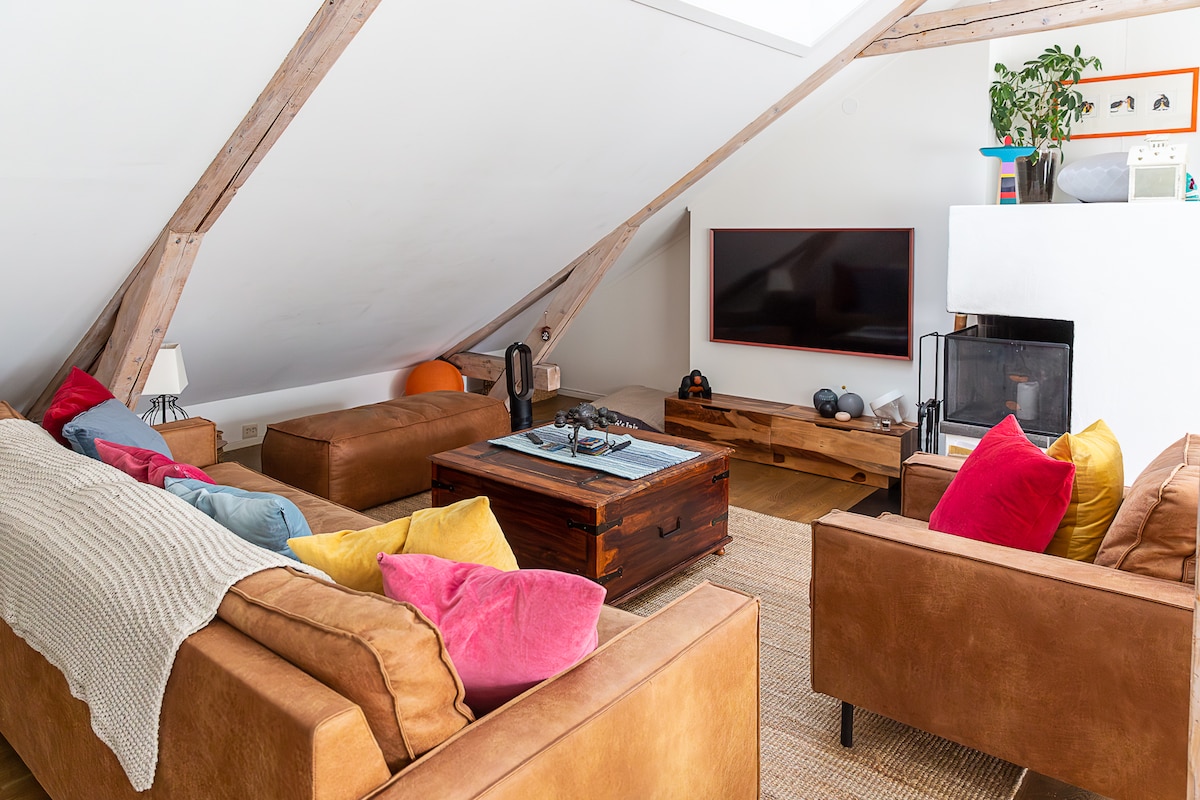 Leiligheten er et romslig loft. Her er detaljene designet av nordiske arkitekter, i en skandinavisk stil for koselige kvelder og arbeid. Stuen er stor og luftig med sofa og spiseplass. Her er det loftsvinduer og autentisk treverk i taket og heltre gulv. Soverommet er romslig med en stor komfortabel seng og en praktisk kjøkkenkrok. Alt du trenger skal være tilgjengelig :) Arbeidsrommet er godt designet for fokusert arbeid med bærbar pc eller lesing. Bøker tilgjengelig for å lese. Velkommen!
