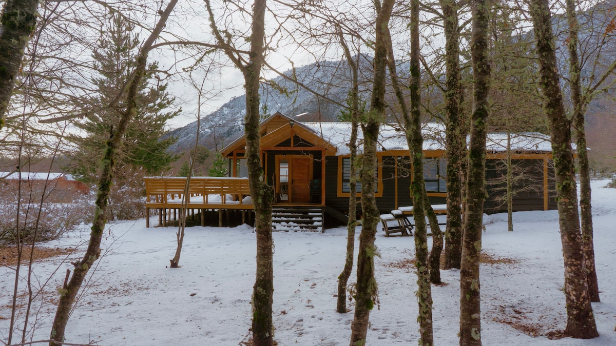 Welcome to your dream place in Malalcahuello! Cozy 100-m² retreat in the middle of the forest, with a spectacular view of the Sierra Nevada. Just 2 km from the town of Malalcahuello, 15 minutes from the Corralco ski resort and hot springs, and 4 minutes from a supermarket and restaurants. Ideal for lounging, working or skiing: Starlink, TV with streaming, board games, work area and chiflonera for the team. ¡Nature and comfort in Malalcahuello! We have everything to make your visit unforgettable!