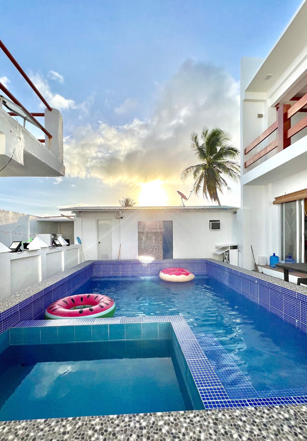 Take it easy at this unique and tranquil getaway. Welcome to Pilar Pilapil's Beach House! Picture this: white sandy beaches, the best sunset on the island, and access to the coolest sea adventures. This spacious gem, with its Filipino style, is owned by the famous actress Pilar Pilapil. It's your perfect spot for a relaxing seaside getaway. The house is 30 minutes walking from the tourist area or just 10 minutes by bike.