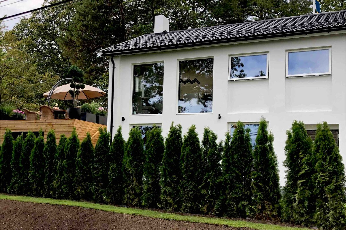 Private Villa with large and secluded garden on both the front and back sides. Barbecue and hot tub in the back by a large glazed conservatory, perfect for relaxing and cozy evenings with family or friends. Stone-paved terrace on the front in a sunny and wind-protected location. Large and colorful playroom with climbing wall, trampoline and much more where the children can play freely! Detached guest house with double bed on the property included. Free parking on the plot, with room for several cars.