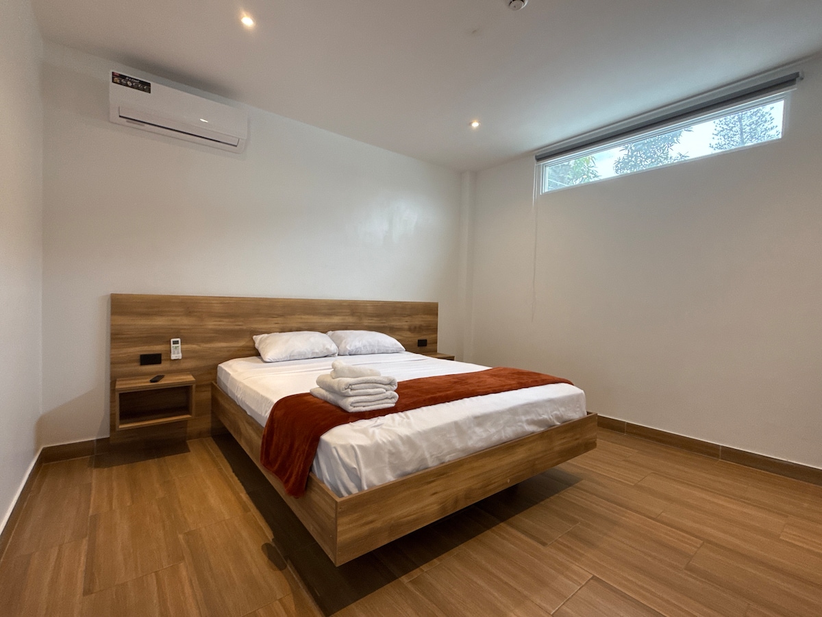 The apartment is completely renovated, has hot water, WiFi, an equipped kitchen, a TV with Amazon Prime Video, and air conditioning. Since it's in the heart of the city, it's close to everything. Iguanas Park is a two-minute walk away, the pier is seven minutes away, and there are banks, a supermarket, and several pharmacies nearby. I'll be available for any questions you may have.