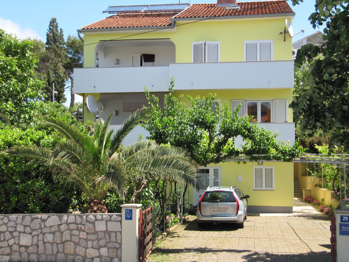 Apartment for 3 persons on second floor has bedroom with double bed, kitchen niche with all appliances and large living room with dining room from which there is a sea view and door to balcony. There are two separate beds in the living room or can be together. The apartment also has a bathroom with shower.