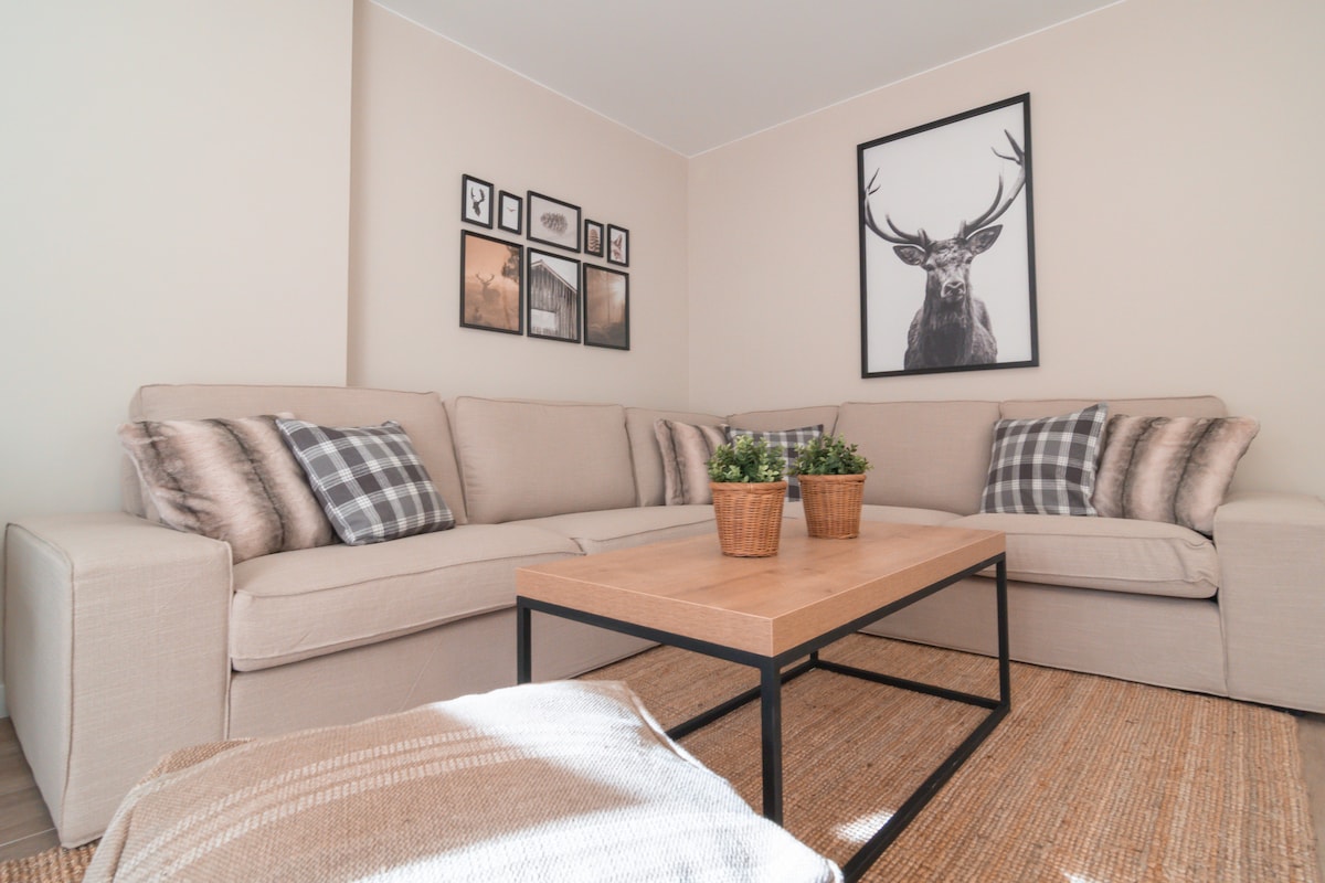 An apartment where you can breathe peacefully and disconnect from the daily grind. If you love nature, you'll enjoy it here all year round. Cozy apartment on the ground floor and space for 4 guests. Private garden with furniture and exceptional views. Wi-Fi and smart TV. Kitchen equipped with all the necessary utensils, washing machine, dryer and dishwasher. Bed linens and towels included. Pets are allowed. It has a Dolce Gusto capsule coffee maker. Parking space and elevator.