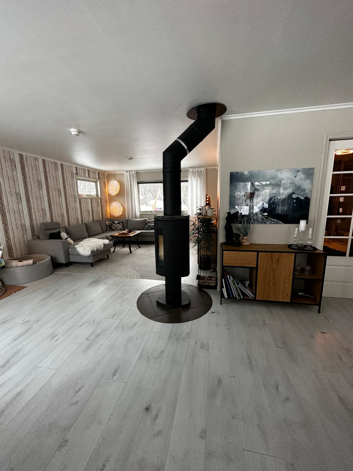 This place is like a fairytale. Imagine waking up surrounded by mountains. Imagine walking out of the door and you are just a few steps away from a fresh lake. Imagine sitting out in nature listening to birds and silence. In the summer you can fish on the lake and drive out with the boat. In the winter you can go skiing, icefish, ice bath, relax in the sauna and the jacuzzi! Boat, jacuzzi and sauna are all included in the price and you will never get any surprise-fees.