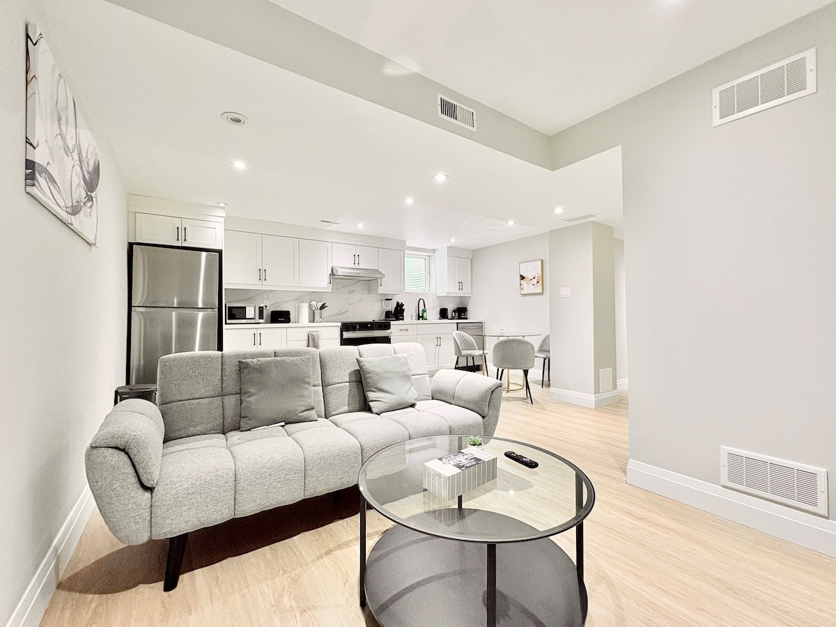 Discover Cozy B, a charming, bright, and fully furnished 1-bedroom apartment with high ceilings, nestled in a peaceful small-town community in Mississauga. Conveniently located just 5 minutes from Toronto's YYZ - Lester B. Pearson Airport, it offers easy access to key destinations like Humber College North Campus, Etobicoke General Hospital, and the International Centre, all within a short bus ride. Features at a Glance: Size: Approx. 520 sq. ft. Windows: 3 large