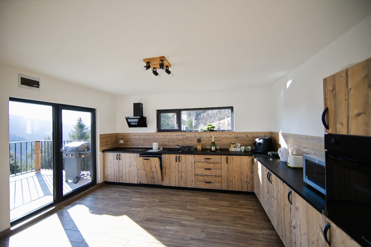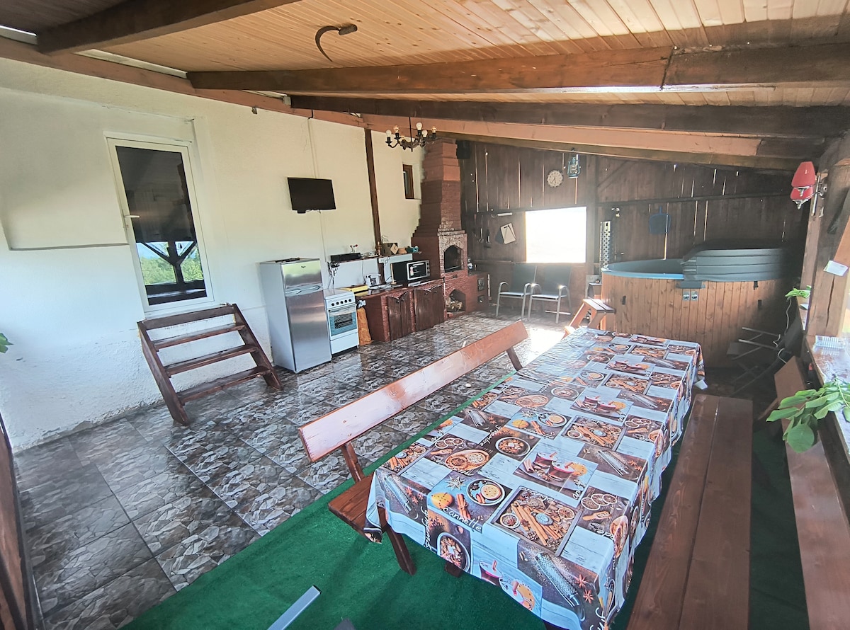 The cottage provides: - autonomous thermal power plant (does not require fire) - 7 rooms, each with private bathroom - equipped kitchen (stove, 2 refrigerators, coffee maker with beans, microwave, dishes, cutlery) - spacious living room + Smart TV - wireless internet - dining room with a capacity of 16 seats - Service Bathroom - covered terrace - grill / barbeque, cauldron Heated auxiliary building for parties - pool table - pingpong table - upstairs a lounge area