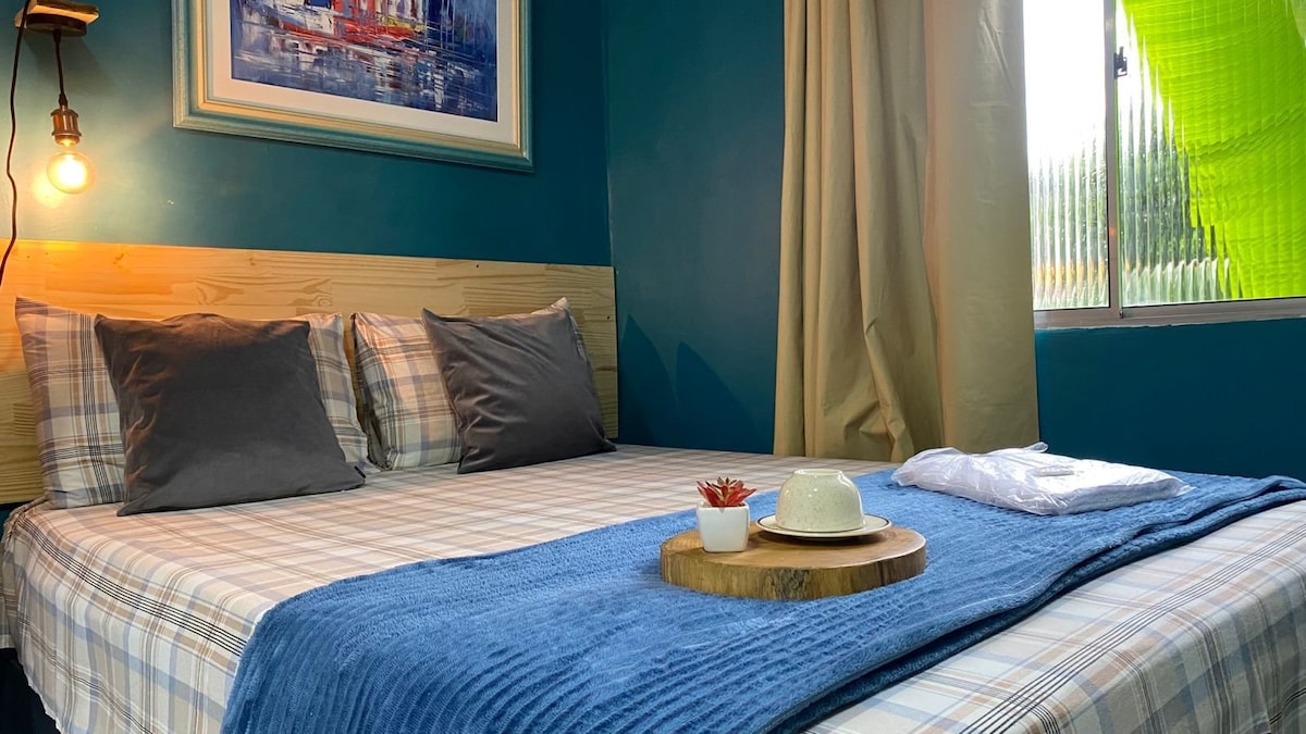 Hello dear traveler, Espaço Aconchego Amazônico is located right in the center of Manaus, with several tourist attractions nearby. Within a few minutes' walk, we can find the famous Amazonas Theater, the Adolpho Lisboa Market, the Central Market, the Cathedral of São Sebastião, and right in front of us is the Port of Manaus, from where boat tours depart, among other places. In the case of a 3rd guest, we have a sofa bed, with a height limit of 1.70 m, for a comfortable night's sleep.