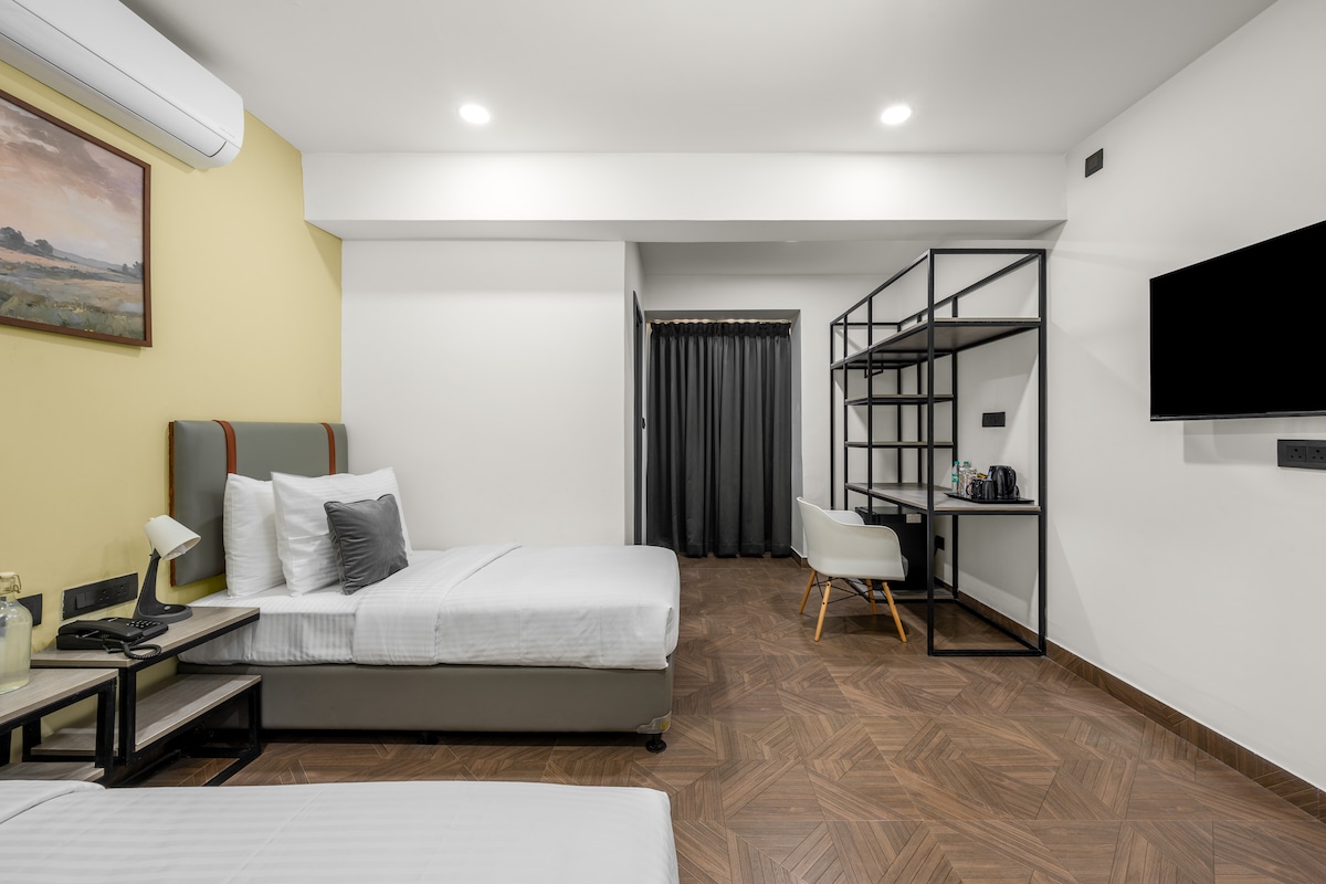 Our luxury rooms offer a sophisticated and indulgent experience. We offer spacious rooms featuring exquisite furnishing, premium bedding, quality amenities where you can rest or can work easily from the room. Don't forget that we are pet friendly. Every pet at our property is our valuable customer. (Complimentary buffet breakfast is included).