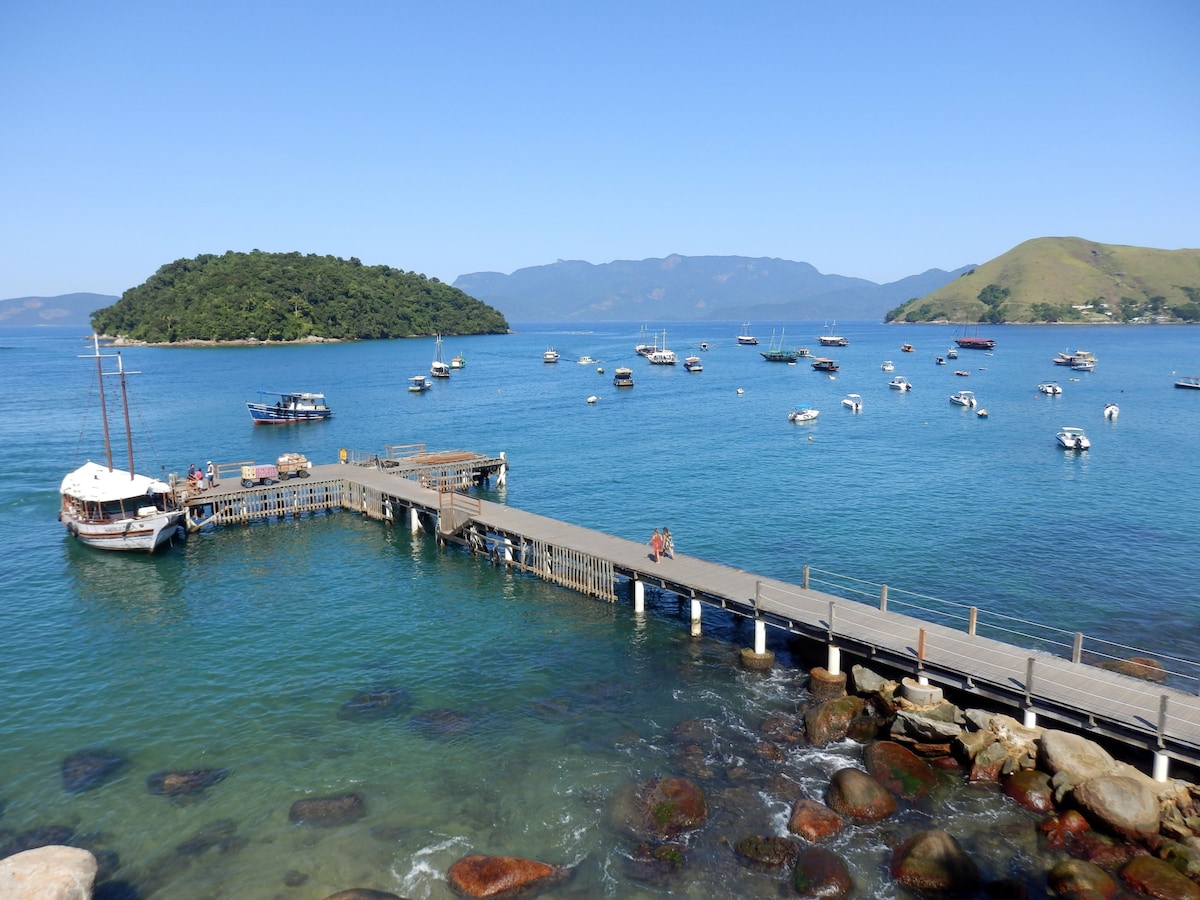 Cozy house in a gated community, private pool, air-conditioning in the rooms with comfort and tranquility by the sea, has a full kitchen, large living room and all nature around. The condominium's pier and leisure area can be enjoyed, with the option of fishing and diving with family and friends, all 5 minutes from taxi boats that arrive in 20 minutes at Ilha Grande, boat trips departing from Marina Porto Real and many other leisure options.