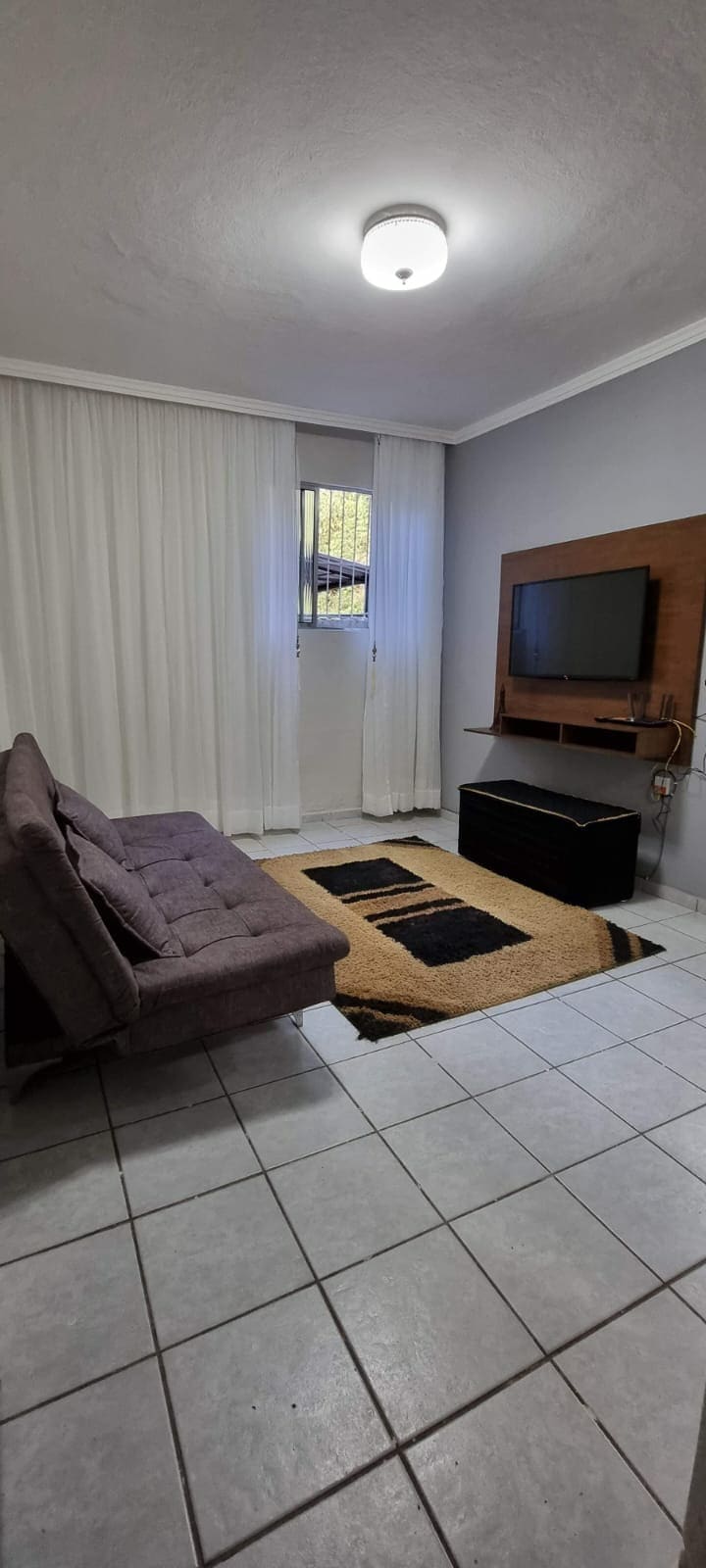 A 90m² space with 3 rooms, 2 bedrooms and 1 integrated TV room with kitchen and service area. New property, with modern furniture and fully equipped for a comfortable stay. We are located at the entrance to Manhuaçu, near the Trevo do Cafeicultor and the 11th Military Police Battalion. We offer Wi-Fi, a covered garage, work space, bed and bath linens, a pillow, a blanket and a full kitchen. Great place for couples, business travelers and families!
