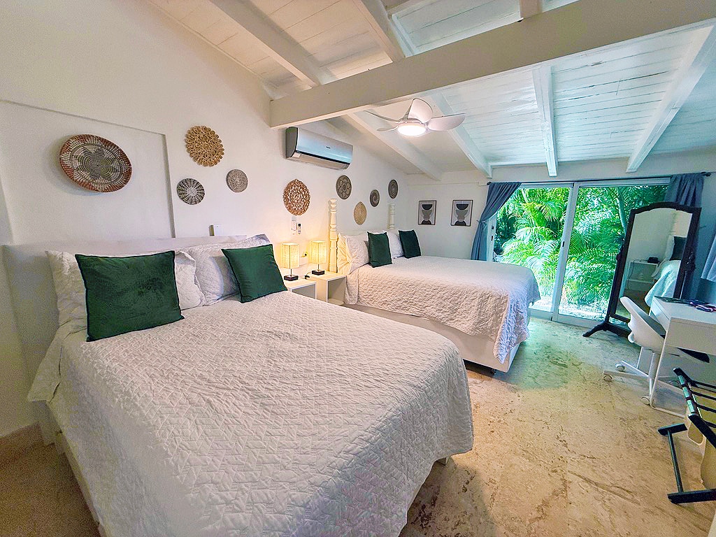 Garden view bedroom with private entrance in Casa de Campo, just a walk to Altos de Chavón in Vista de Altos. Cozy queen and full beds. Includes small fridge, microwave, coffee maker, a/c, Netflix, desk, and high-speed WiFi. Pets are welcome for a fee of $50 per stay. Free parking, daily pool until 9 pm. Guests get free access to Altos de Chavón, Minitas Beach, and the Marina during their stay. Boat rental to Palmilla in our Boston Whaler is also available at the Marina.