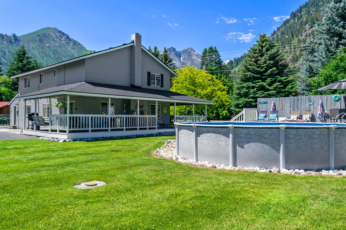 Welcome to Icicle Oasis! Your home away from home with all the amenities of a resort. Boasting an acre of land with an above ground pool (heated May to October 1st) hot tub, basketball hoop, fire pit, and a large pond complete the serene laid-back escape. Close enough to town to enjoy all Leavenworth has to offer but far enough away to escape the hustle and bustle while relaxing on the porch with stunning views of Sleeping Lady Mountain. Camera installed by parking lot only. County permit#000120