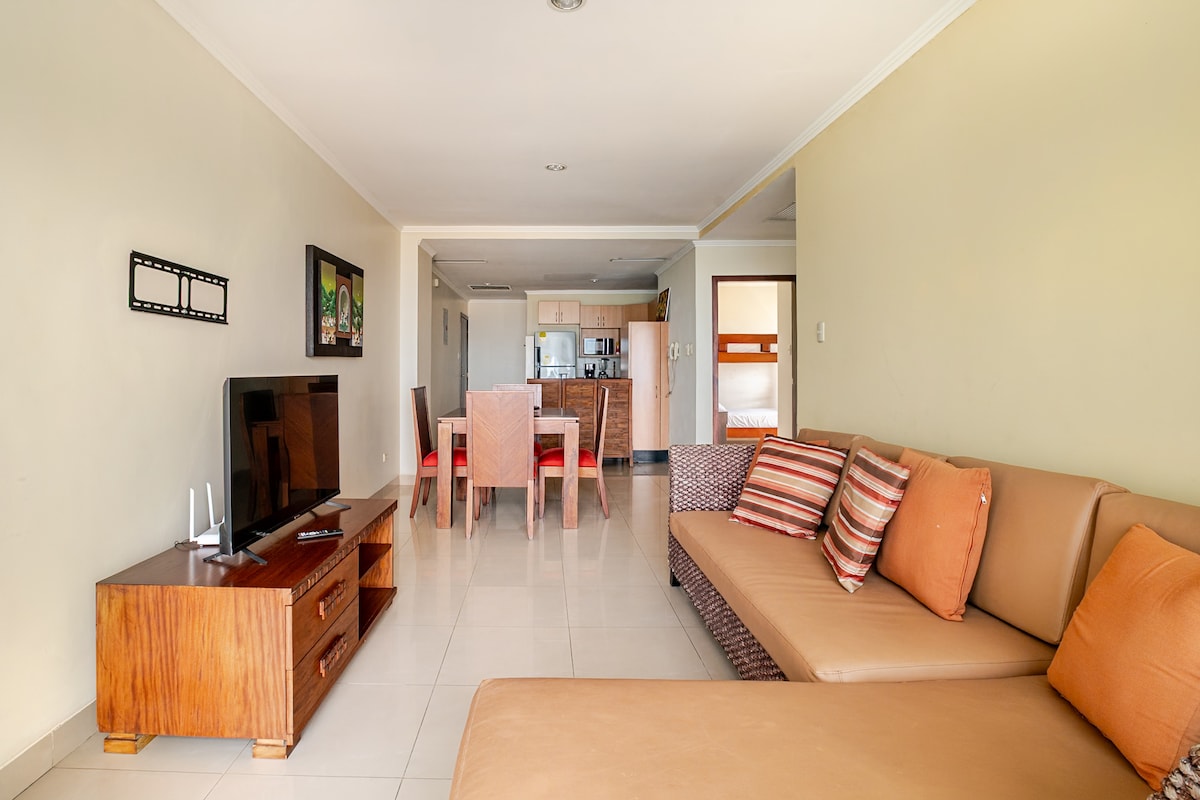 Modern apartment with ocean views, steps from El Murciélago Beach (venue for Ironman 70.3), Mall del Pacífico, and top local restaurants. Perfect for vacation/remote work with a monitor provided. Quiet, away from street noise. 24/7 security and high-speed fiber optic internet. Amenities include a pool, sauna, and jacuzzi (open Tue-Sun, it may change without notice). The building has a generator for common areas, and a UPS keeps the WiFi running. Elevator, water, and internet work during outages.