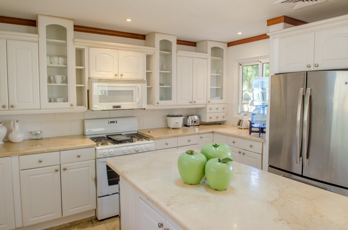 Location, space, views. Beautiful mediterranean style house overlooking the bay and town. A short 5 minute walk to beach, restaurants and bars, yet it feels like a private oasis. Gorgeous sunset views. Backup power & double pane windows. Potential noise coming from town. CCTV security -respect guest limit. You get exclusive use of the house (NO access to the stairway leading to an upper level). 6+ groups please check our Mediterranean villa listing option.
