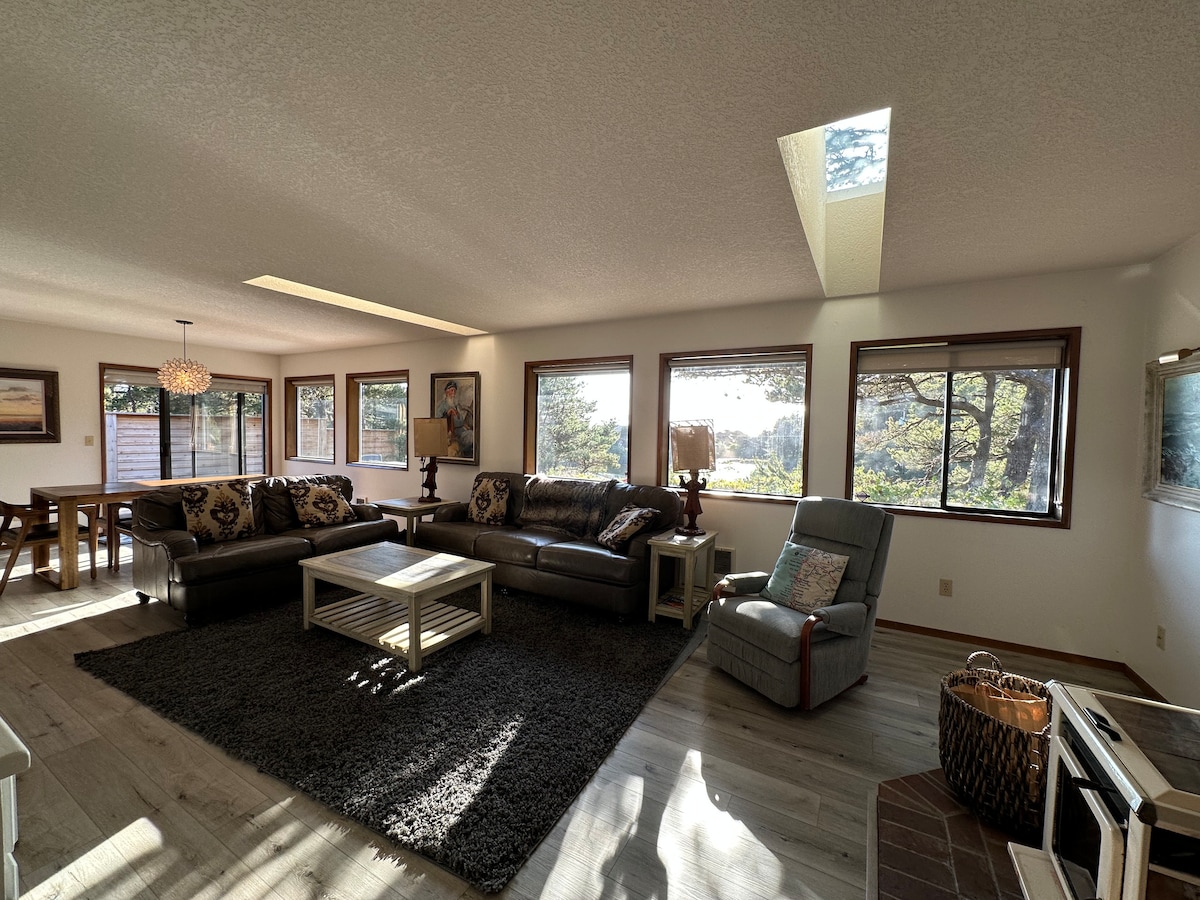 The spacious open floor plan and vaulted ceiling, designed by architect Dennis Norman, makes this place one of a kind! Bordering the forest at the end of the road you are in a secluded oasis located at the top of the hill above Manzanita. With skylights, fabulous kitchen, big wood stove, and cozy bedroom loft, hear the distant surf and the rain on the roof as you wake up or doze off . Yet only minutes away from Manzanita and the beach.