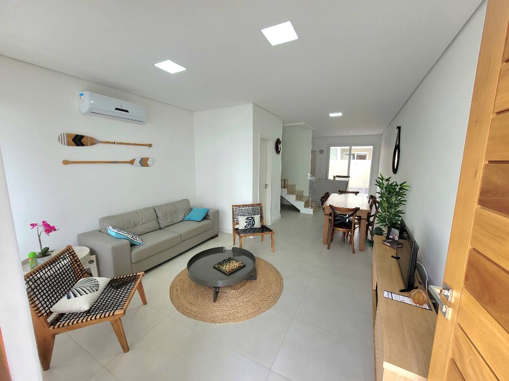 Gated and private condominium in Capão da Canoa, with Resort structure, central location, safe and family atmosphere! About the house: The upper floor has 4 very spacious bedrooms, all with air conditioning! There are 2 en-suites + 2 bedrooms + 1 social bathroom. The ground floor has a large living room with TV, an open kitchen (equipped with everything you need), a toilet, laundry room and a lakeside balcony with a private Jacuzzi. There is a private parking space for 2 (two) vehicles.