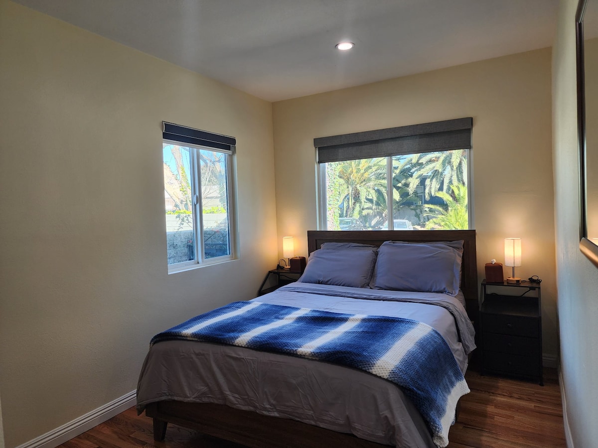 Safe, family-friendly- 9 miles to So FI stadium/Kia forum Relaxed, homey vibe-central AC/heat. Cozy fireplace, Stocked kitchen Comfy Beds Two TV's w/ streaming/fast WIFI Driveway Parking Tropical Garden - Dining area, BBQ, fire pit, loungers & shower. Solar-heated Pool (weather permitting) 4 Bikes/locks/Beach goods -Restaurants, Park & store walking distance. All spaces are fully private to you. Host lives on property but respects privacy-Reviews say it all. Outdoor 420-friendly