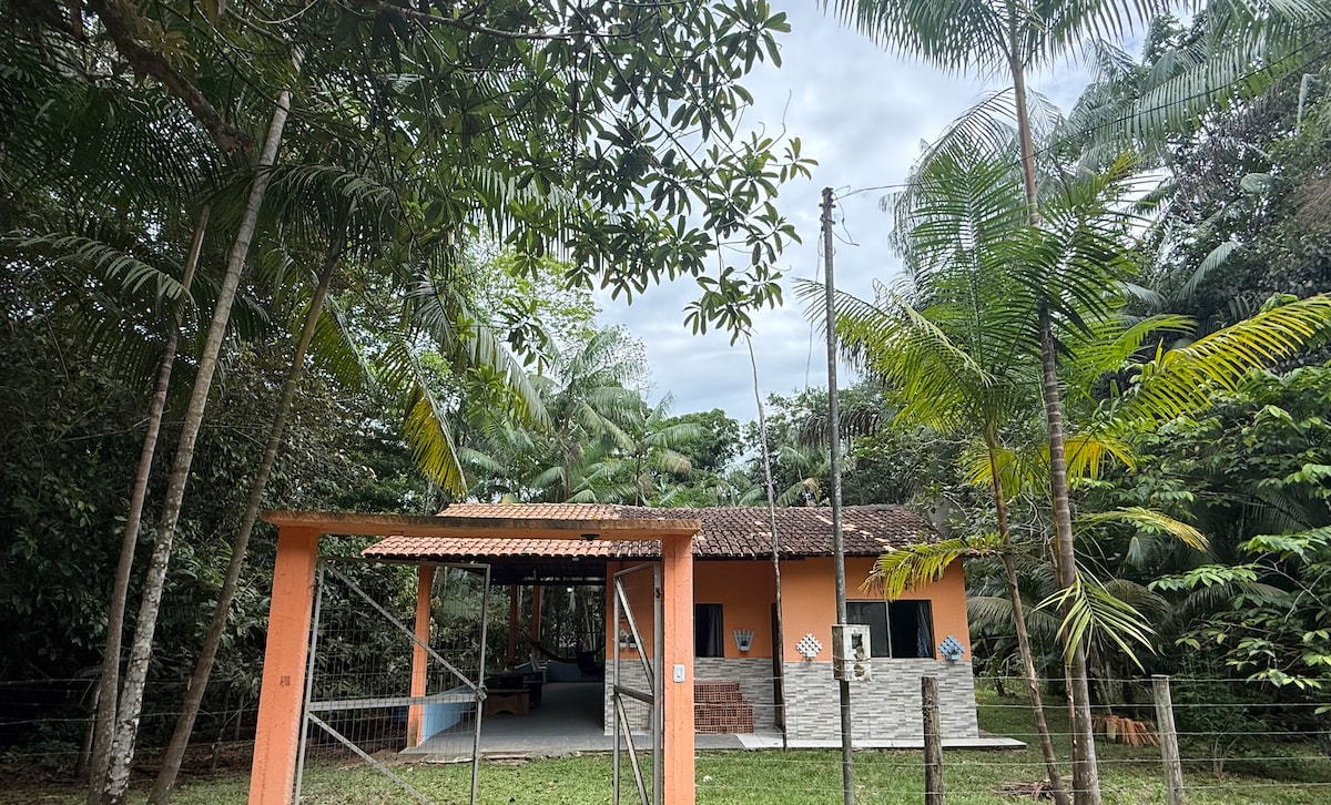 beach house on Cotijuba Island. House with a balcony, large bedroom, bathroom (en-suite), shower outside, kitchen with balcony, hammock hangers, outlet for charging cell phone, fan, freezer, refrigerator. Large house with a wonderful backyard beautiful relaxing place, quiet, great to enjoy nature. bucolic. near beach, bakery, market, all very countryside and simple. You can cross by boat or ship, or take a scooter, motorcycle or cable car for a nice adventure to 🏝️