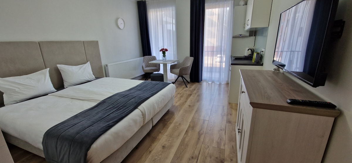 This apartment is located in a quiet ultra-central zone, in the immediate vicinity of the Baia Mare Central Park, having a stunning view. The property has a plenitude of features that make it suitable for all types of guests. The apartment is 70 sqm and has a spacious living room with A/C and 65 inch Smart UHDTV, one bedroom with a king bed with professional mattress, bathroom with walk-in shower, 10sqm balcony, parking and many more.