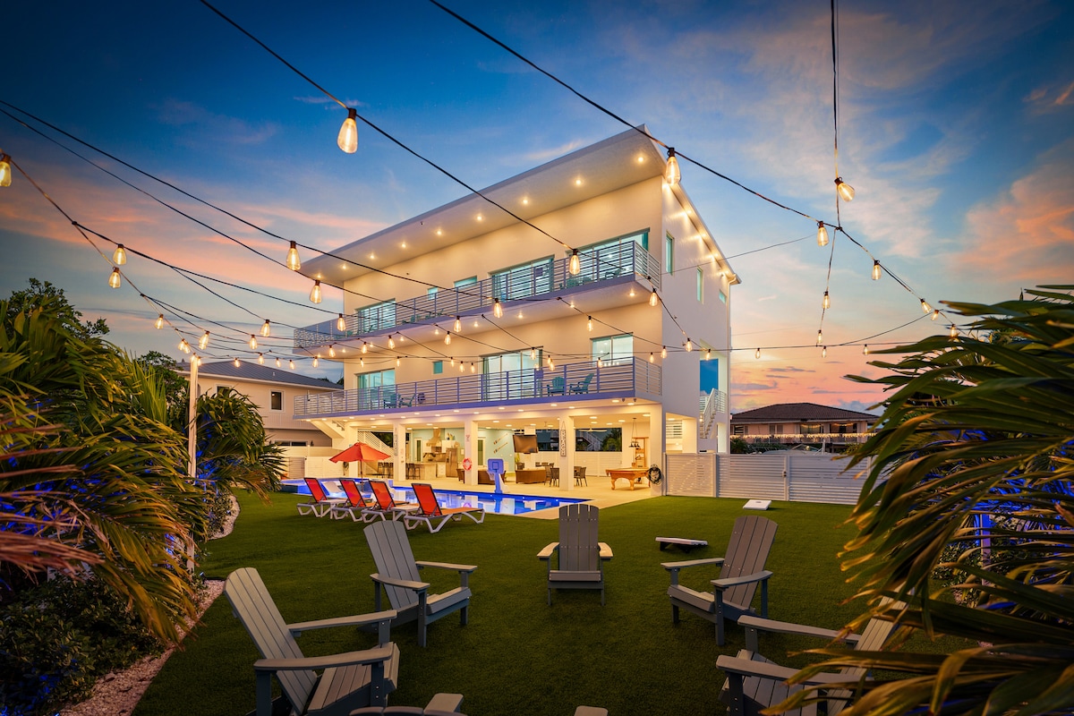Come stay at this brand new home construction on a deep and wide canal leading to the ocean with pool and exotic decor. 75 foot dock with water and electric. Top of the line appliances with a fully stocked kitchen. Spa style showers with high end decor. Luxury at its best. Heated pool with sundeck and lots of seating around the edges. (Pool heater is an additional $100 per stay). Ground level cooking and dining for those beautiful days after boating or while laying around in the pool.