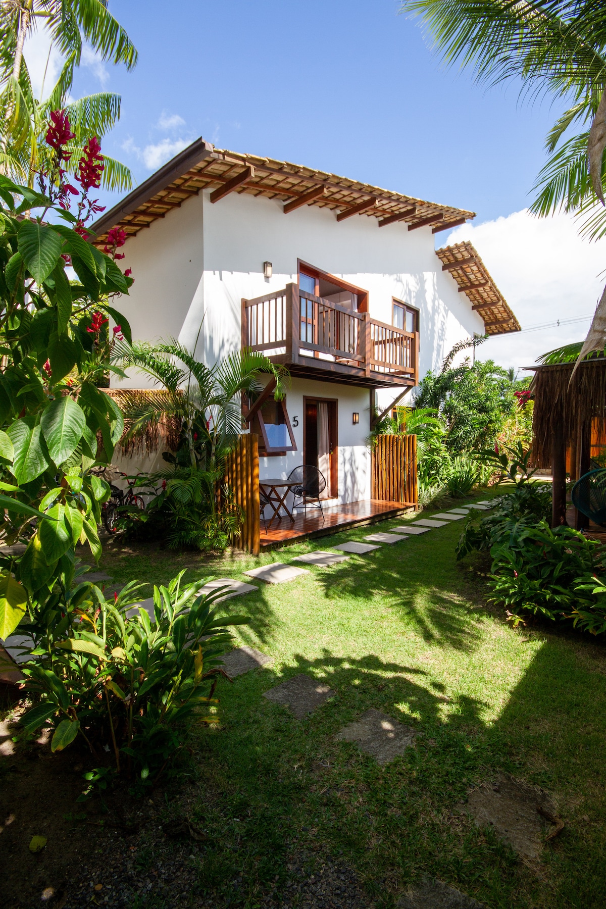 Seasonal bungalow close to the beaches and the center of Itacaré, in a quiet place surrounded by lush tropical vegetation. Spacious en-suite with a queen-size bed and a single bed, equipped with air-conditioning, TV, Wi-Fi internet and kitchen area with microwave, minibar, coffee maker and induction cooktop. Balcony with a hammock facing the Atlantic Forest.