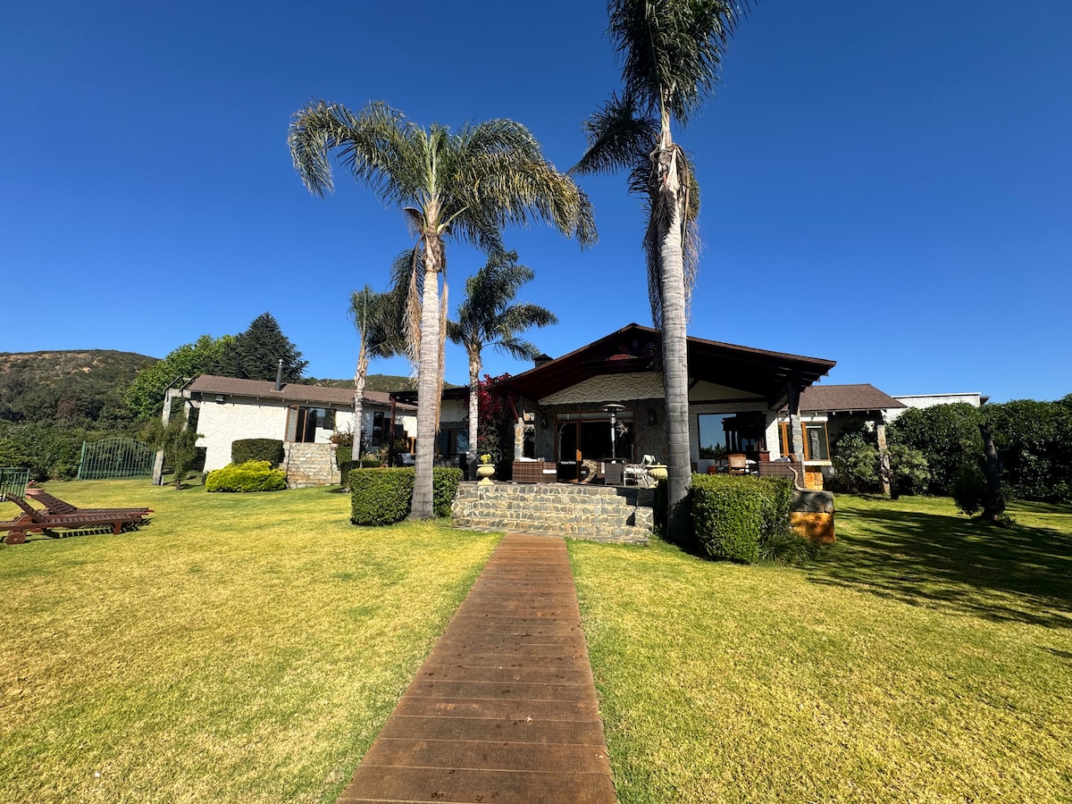 Villa Hermosa is a complex of 6 independent cabins, fully equipped, full kitchen and terrace with on-site grill. We include sheets and towels. All heated and some with a wood-burning fireplace. The common areas have a swimming pool, spacious gardens, and a playground for children and families. We also have services at an additional cost such as a hot tub, sauna, breakfasts and lunches. We are 800 meters from downtown Olmué. Family-friendly and quiet atmosphere.