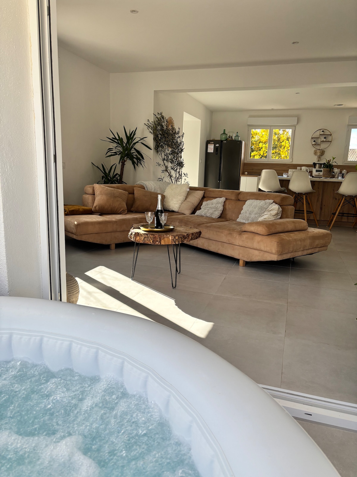 Feel@Home Nemausus® offers️ you for rent this independent luxury accommodation ⭐️⭐️⭐️⭐️ at the gates of Nîmes (7 min). It consists of a bedroom with️ queen size Bultex® bedding (160/200), a living room open to the fully equipped kitchen, as well as a bathroom with bathtub. The cinema option has been selected with an xxl screen (75 inches) 4k and the Netflix streaming service.🎥🎞🍿 You also have a 160 m2 private garden and a private parking space.🅿️
