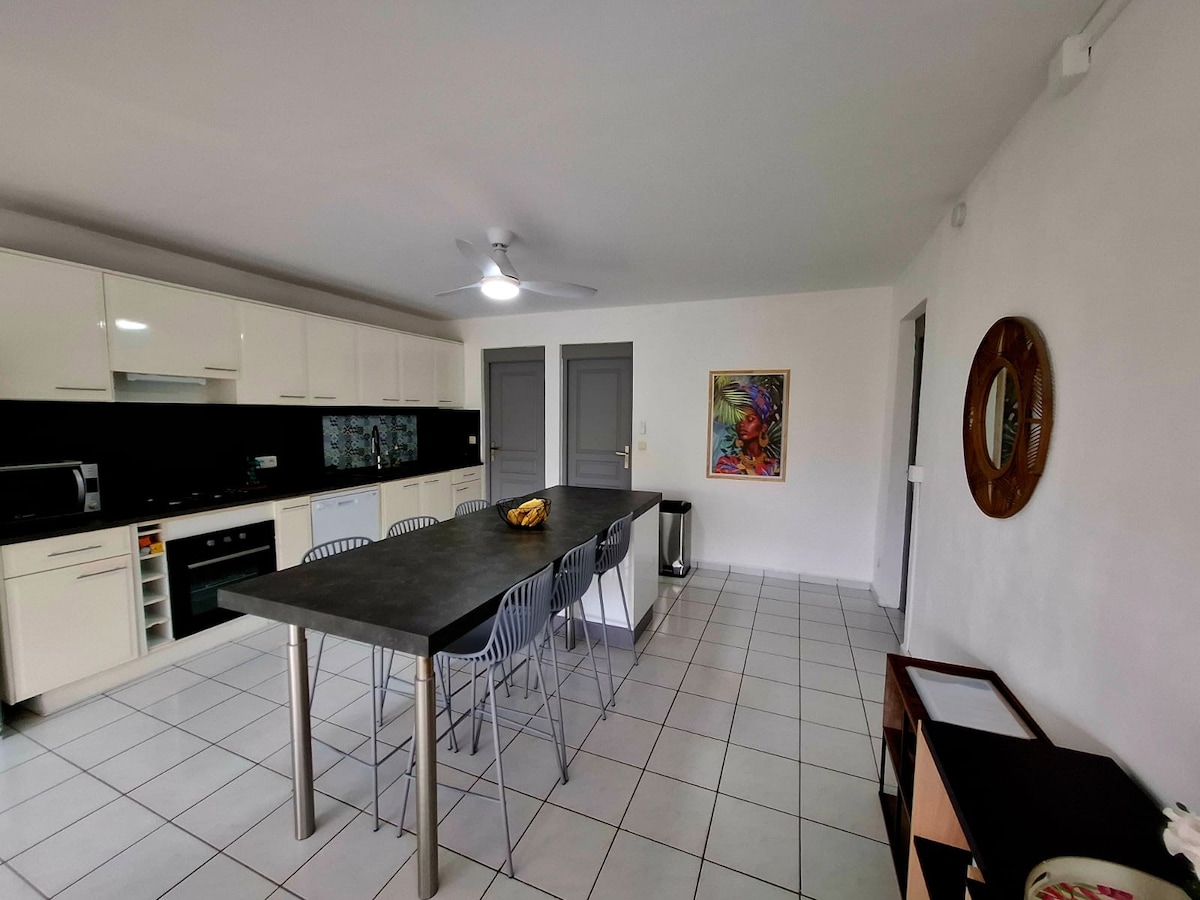 Forget your worries in this spacious and serene space. Charming, peaceful and beautiful haven for an unforgettable stay on the leeward coast of Guadeloupe. Villa of 110 m2, (3 bedrooms and 2 bathrooms, American kitchen), a covered outdoor living veranda of 45 m2 extended by a large sunbathing terrace of 100 m2 equipped with an awning facing the 32 m2 swimming pool (8x4)