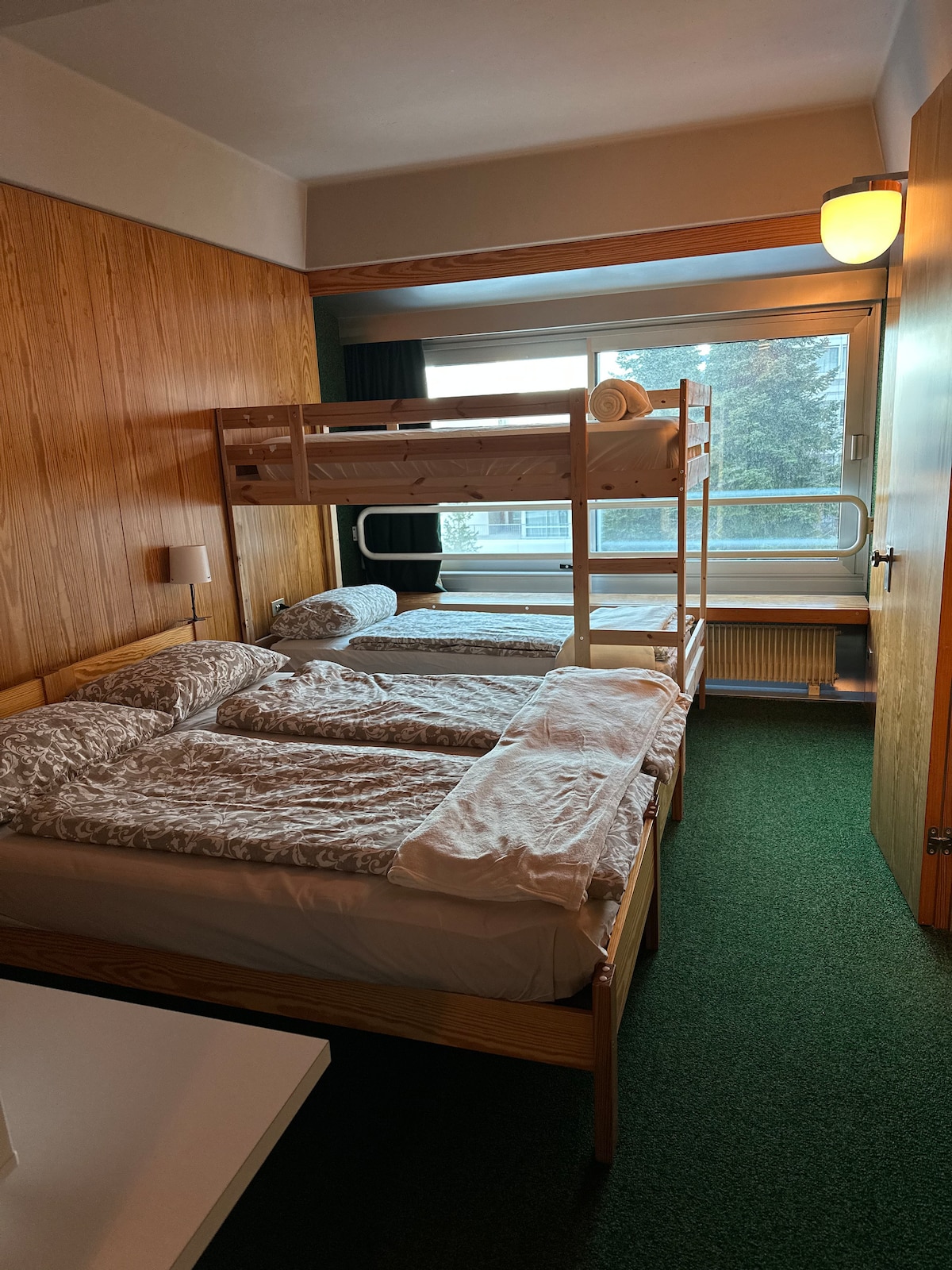 Functional one-bedroom apartment with kitchenette and dining area. In the living room there is also a foldaway double bed and a single sofa bed. In the other bunk bed room, single bed Reserved parking space. Reserved cabinet at the ski storage. The apartment is part of a residential complex that has a shopping center with market, restaurant, self laundry, games room. ..Pool , sauna, mini club are services for a fee