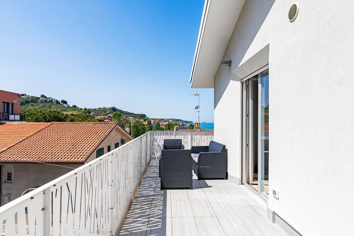 Apartment for rent in San Vito Marina with spectacular views of the Trabocchi Coast, a short walk from the sea, the bike/pedestrian path and the famous street food. The 70 sqm apartment, recently renovated, can accommodate up to 5 people and consists of a bedroom, large living room, kitchen, bathroom with shower, and panoramic terrace. It has air conditioning, gas stove, dishes, microwave, dishwasher, fridge with freezer, hairdryer, TV and washing machine.