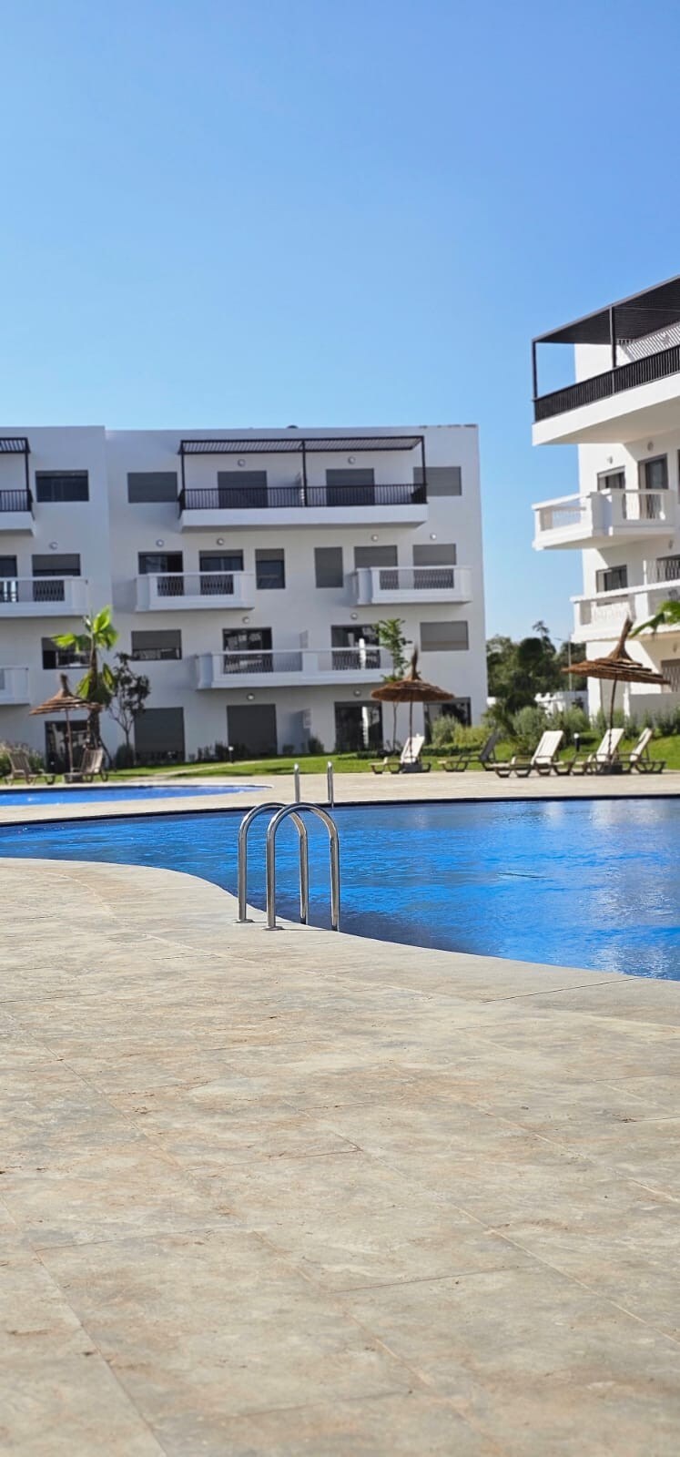 Nice new apartment in a secure private residence with 3 swimming pools, a children's play area, free parking on site and 5 minutes from the beach. The apartment consists of 1 bedroom with bathroom, a living room, a dining room, a well-equipped kitchen, a shower room and a large well-equipped terrace. Close to all amenities (Café, restaurant, pharmacy and supermarket), the apartment is 10 minutes from Martil and M'diq.