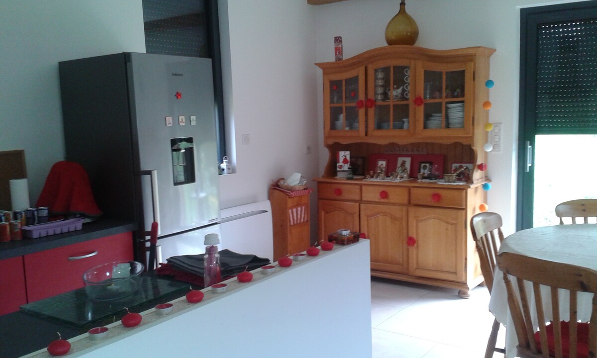 The cottage has just been rated 2 STARS⭐ The air-conditioned cottage is composed of a fully equipped new kitchen (dishwasher, refrigerator with freezer, washing machine, Dolce Gusto, coffee maker, toaster, kettle...) with sitting area, two bedrooms, a bathroom with Italian shower and toilet. The first bedroom has a double bed, the second bedroom, which is accessed through the master bedroom, is furnished with a single mezzanine bed.