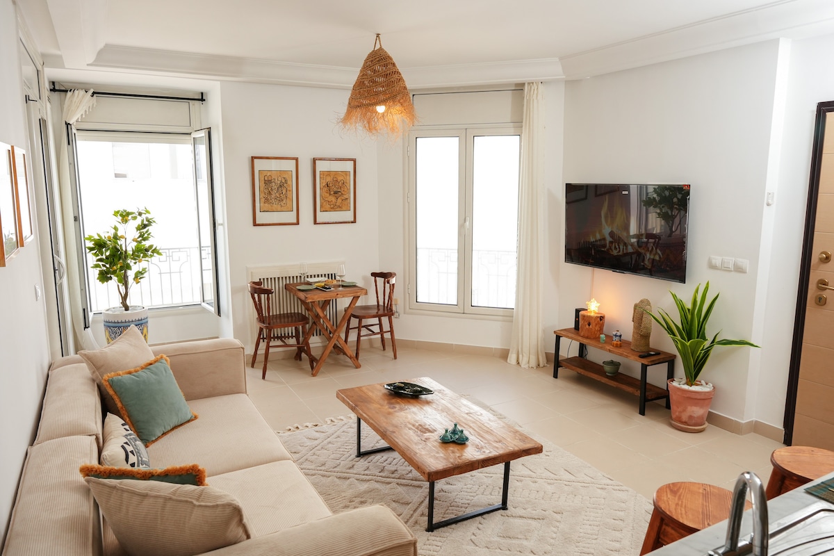 Discover this charming apartment in Marsa Plage, one of the most popular neighborhoods in Tunis 🌴. Ideal for a couple or a business stay, it offers a bright living room, a comfortable bedroom, an equipped kitchen and a bathroom. Enjoy an exceptional location, close to the sea, trendy cafes and restaurants. Comfort, quiet and Tunisian authenticity await you ☀️.