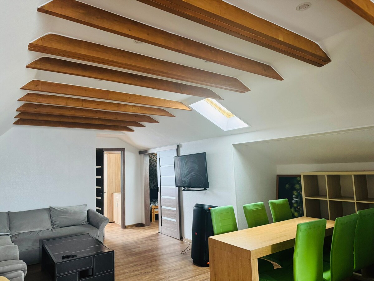 Do you want to feel the real Latvia? The real deal? Come stay in our guesthouse, which has its own sauna and 3 cozy bedrooms, 2 ensuite, fireplace and well equipped kitchen. You can celebrate with a beautiful garden view. Only 8km from Riga city center in a beautiful garden, direct bus connection.