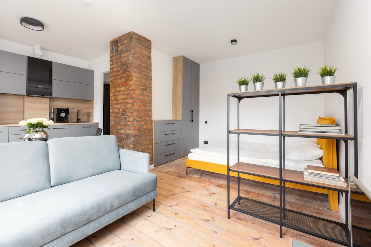 Located in the charming district of Āgenskalns, right next to the historic market, this freshly renovated apartment blends modern comfort with subtle historic touches. Situated on the 3rd floor with a private entrance, the apartment offers a cozy retreat just minutes away from Riga’s center. Exposed brick walls add character, while thoughtful design ensures both comfort and practicality. Ideal for two guests.