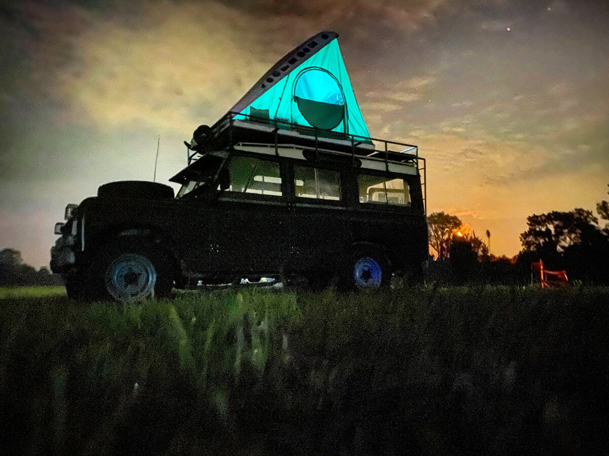 Glamp in a classic safari Land Rover