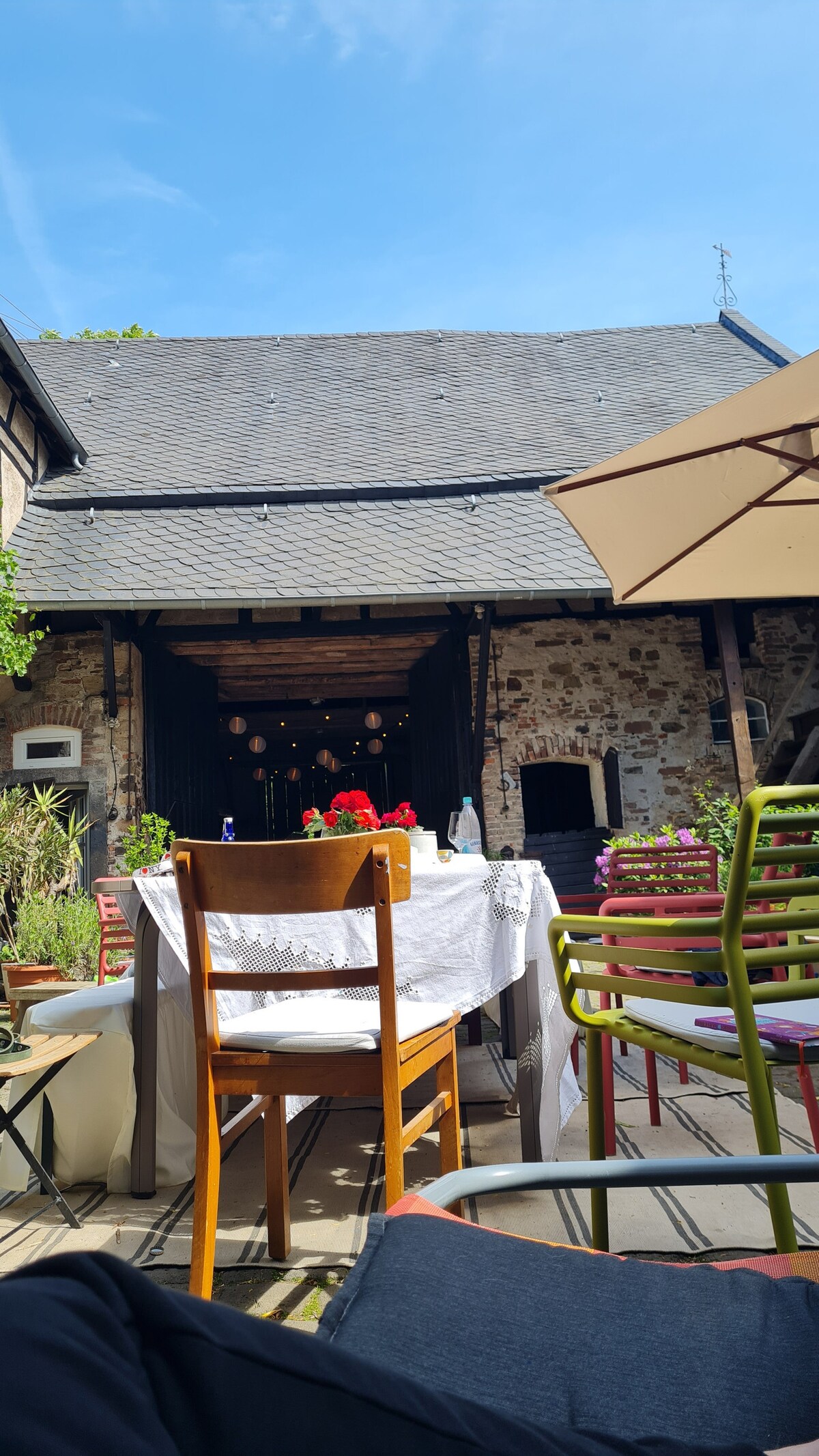 Restored with love... Enjoy a leap into the cold Maar (30m), a sundown at the castle (80 m), hiking, cycling or visit the famous Nürburgring (18 km). The house joins old with modern and offers 110 m² with a big kitchen/dining room with balcony, a cosy living room with 2 convenient bed couches, one sleeping room with double bed and bathroom, one sleeping room with 4 single beds and a second bath downstairs.