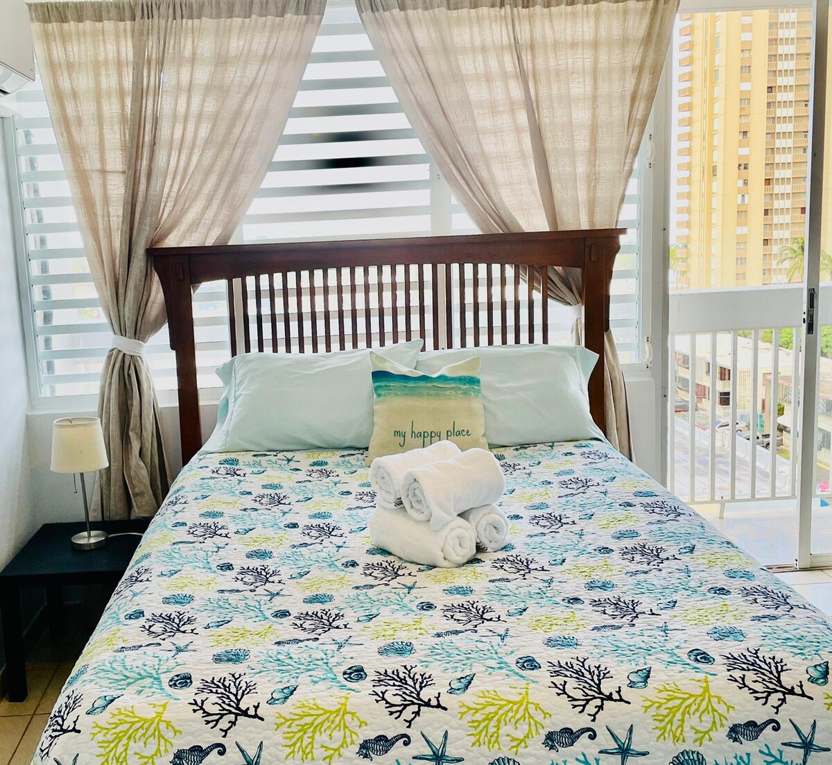 Take it easy at this unique and tranquil getaway.Located on the 15th floor with a spectacular 180 degree ocean front view!! Dining table for 2 A/C Free WiFi Reserved Parking Fully Equipped Kitchenette. King Size Bed Walking distance from Walgreens, restaurants, supermarkets. Playa Azul has direct beach access where you can freely go in and out of. Uber is available and relatively inexpensive. Excellent for morning or sunset walks and swimming! Super serene and safe environment :)
