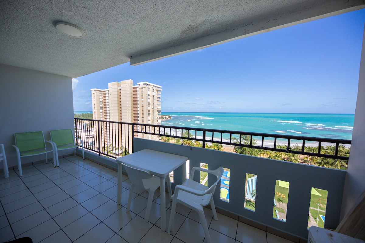 Our Amazing Beach Front Apartment it's located on the 8th flr so you have unobstructed view of the Ocean. Enjoy your coffee in the Morning, while feeling the Ocean breeze, then take stroll towards the beach (about 1/2 block). It's clean, modern and inviting for couples and families. It is also close to main attractions of the East of Puerto Rico, including Kioskos of Luquillo, the Rain Forest (El Yunque) and the Bio Bay. The Unit it's complete with Beach towers & Chairs and a complete Kitchen.