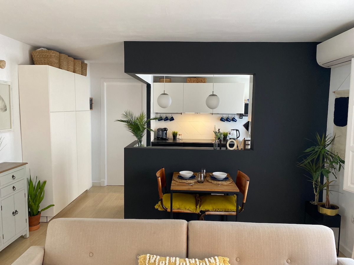 Enjoy a luxury experience in the heart of the famous and lively carnaval neighbourhood of La Viña, a 2 minute walk (100m) from the picturesque Caleta beach. Next to the popular La Palma street. Very well situated with bars, restaurants, shops, etc. A welcoming apartment fully equipped. Sofa bed and open plan kitchen living space. Air conditioning and wifi throughout the apartment. Ideal base for enjoying the beach, terraces and meandering walks through the historic streets of the old town.
