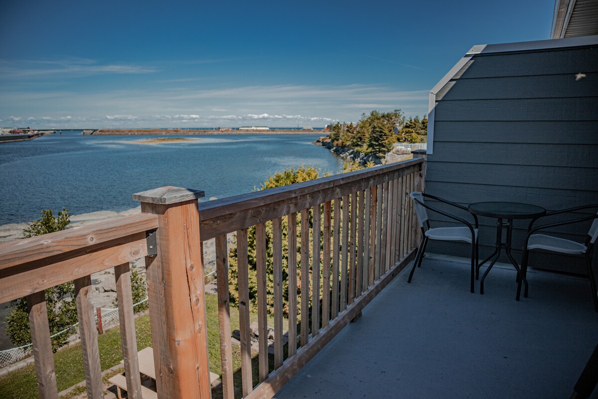 Nous sommes situé côté fleuve, la plage est votre cour arrière. Vous avez votre entrée privé et un balcon sur le côté de la mer, pour prendre un cocktail ou petit déjeuner. Un emplacement de rêves où l'on peux relaxer!. Beaucoup d'activité: randonnée, vignoble, sous-marin , jardin de Métis ,Mont-Comi (ski). Nous sommes directement sur la route des arts, donc beaucoup de galerie à proximité. A distance de marche d'une brasserie artisanale, cantine. (no. 304573)