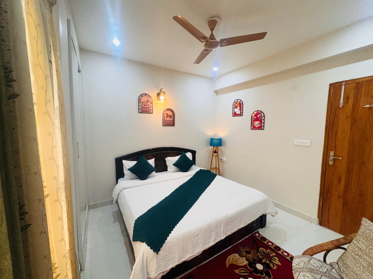 Welcome to Shrisaa Homes - A Boutique Stay, a thoughtfully designed studio apartment located in one of Vrindavan’s most popular and well-connected society. With its mix of Rajasthani charm and modern elegance, this boutique stay is perfect for couples, solo travelers, or small families looking for a unique and comfortable home in the holy city.