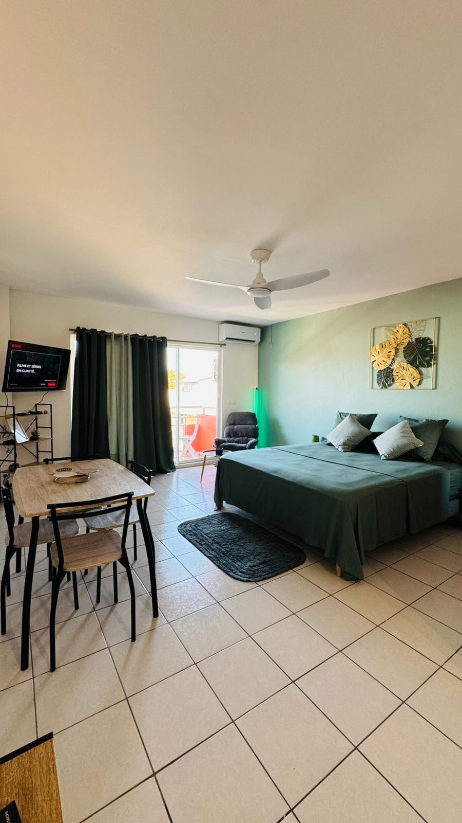 In downtown Cayenne, in the immediate vicinity of Place des Palmistes, this large studio of more than 30 m² located on the 3rd floor offers the essentials for a comfortable stay. 🛏️ King size bed ❄️ Air conditioning + air stirrer 📺 Smart TV 🛜 Fiber Wi-Fi 🍳 Equipped kitchen area (oven, stove, microwave) Shops and restaurants within walking distance. A functional and well-located studio, ideal for solo or business travelers.
