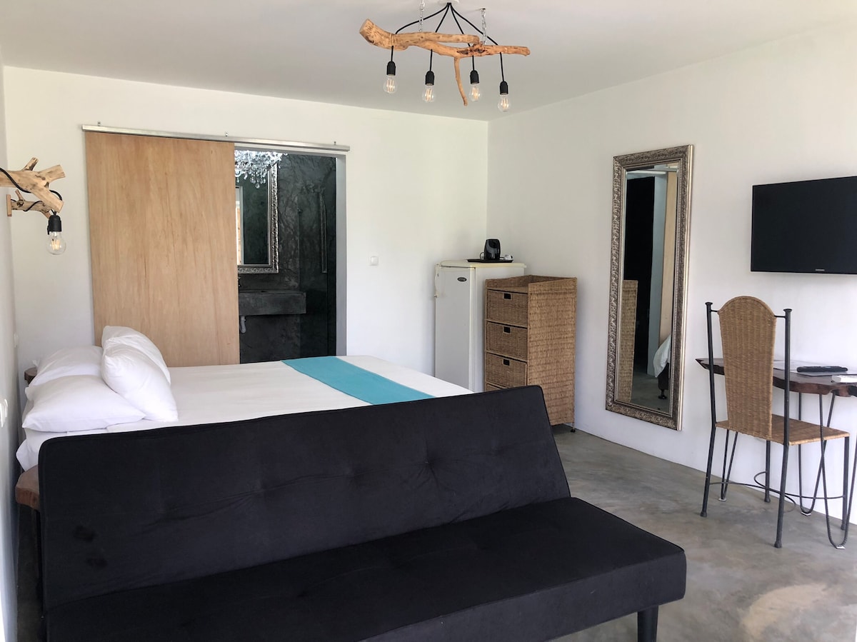 A jungle-gem situated on the foresty sand dunes of Ponta do Ouro. A hidden oasis at the beach front and near Ponta center. This is a must see property for anybody seeking peaceful accommodation surrounded by nature and wildlife. FYI: the room can accommodate 2 adults + 2 children (<14 years)