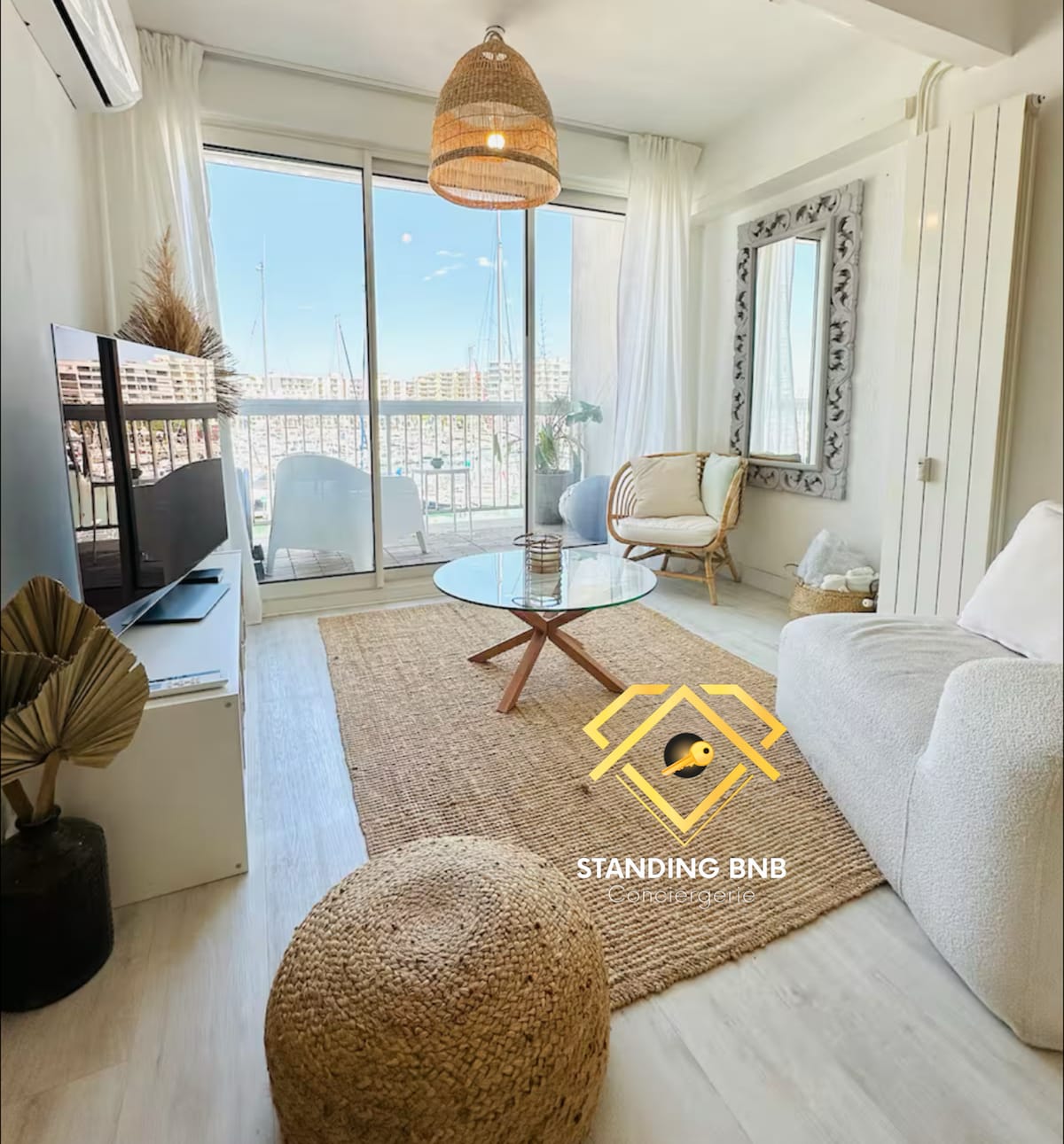 Ideal location on the Port of Carnon, a 5-10 minute walk from the beach. 5 min drive to Montpellier Exhibition Center, Arena and Studi Completely renovated and equipped studio: all you have to do is bring your suitcases. It offers a great 180-degree unobstructed view, from Montpellier to La Grande Motte via the Pic Saint Loup, the ponds and the canal. 🚙 Paid parking until October 31 (choose the cheaper green zone) FREE parking from November 1