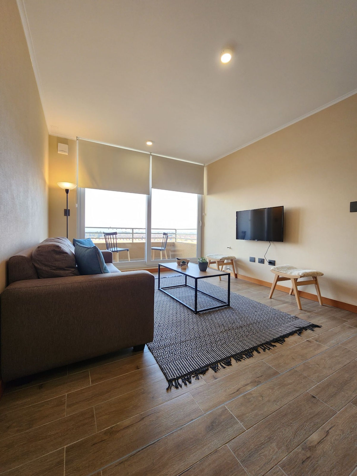 Beautiful apartment with a nice view, ideal for travel or work! Located in a safe condominium in the Las Rastras sector, 3 minutes from the Plaza Maule Mall and casino. It has: -Elevator, pool, quincho -1 parking space -1 bedroom with a double bed -Walk-in closet with 1 en-suite bathroom - Fully equipped kitchen -Cozy living/dining room -Terrace with a beautiful view