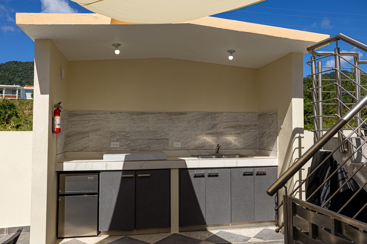 A Villa hidden in the mountains of Cayey. Furnished with exquisite taste to make short or long term stays unforgettable! One bed, equipped kitchen, family room with TV, relaxing areas and an amazing terrace with views that seem unreal. Just a short drive away from the famous “lechoneras” and amazing restaurants and hiking trails. This comfortable and unique property has 360 views that will blow your mind.