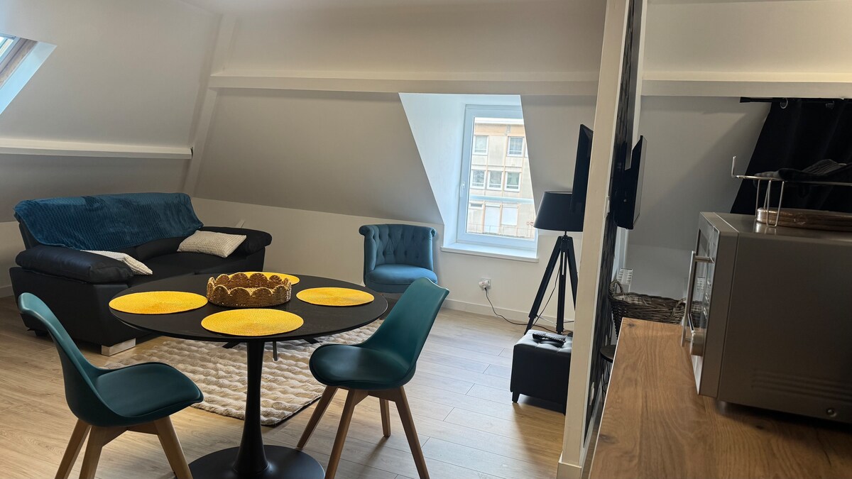Welcome to L'Escale Cherbourgeoise! Come and discover this completely renovated 20 m² apartment, ideally located in the very center of Cherbourg on a quiet street, on the 2nd (and last) floor of a small building typical of the region and at the back of the courtyard. Close to the port, the town hall and all shops. 15-minute walk to the train station and the Cité de la Mer. 10 min from Naval Group and DCNS. Street parking is free. Free port parking 200 m away 24/7 check-in/checkout.