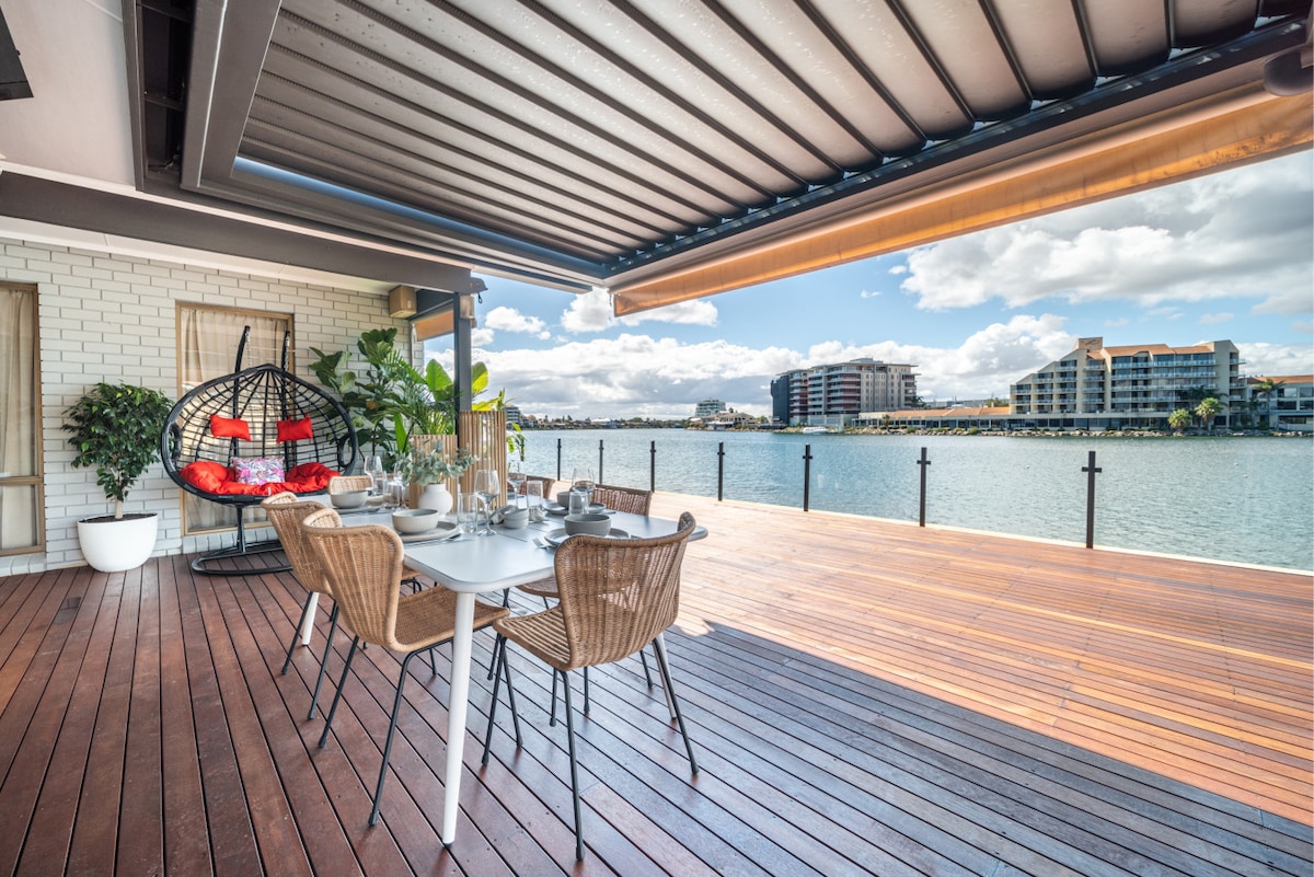 The perfect retreat for all seasons. Offering sauna, cosy fire and BBQ facilities. Swim, fish or kayak off our pontoon. Minutes from the pristine Tennyson beach and sand dunes. Enjoy swimming, fishing or walks along the white sand. Ideally located we are just minutes from the city of Adelaide, the airport and walking distance to the West Lakes Shopping Centre, restaurants and hotels. Complete your day with a relaxing sauna or enjoy a romantic drink while watching the stunning sunset.