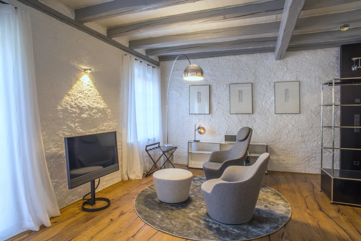 The Balthasar Ress Suite in Hattenheim (in the middle of the Rheingau wine-growing region) is located in the manor house of the Ress family from the 18th century and is a unique, modern accommodation in the Rheingau at the highest level, equipped with high-quality designer furniture and appliances. The Balthasar Ress Suite is rated 5 stars (highest category) according to the classification criteria of the German Tourism Association: "The vacation rental offers first-class amenities with exclusive comfort."